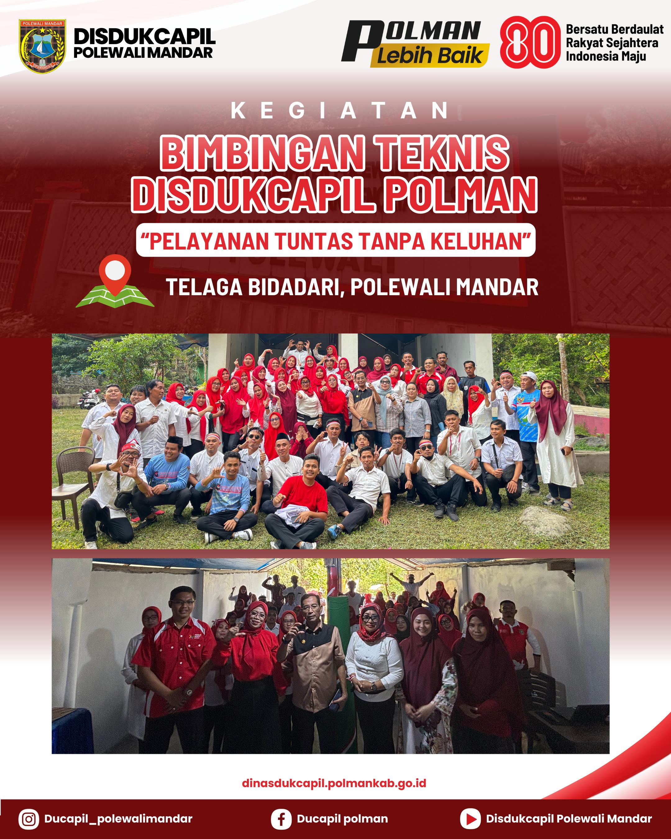 Polewali Mandar – Jumat, 22 Agustus 2025, Dinas Kependudukan dan Pencatatan Sipil (Disdukcapil) Kabupaten Polewali Mandar menggelar kegiatan Bimbingan Teknis (Bimtek) dengan tema “Pelayanan Tuntas Tanpa Keluhan”.Kegiatan ini menghadirkan narasumber Kepala Dinas Kependudukan dan Pencatatan Sipil Provinsi Sulawesi Barat, Drs. Muhammad Ilham Borahima, yang memberikan materi terkait strategi peningkatan kualitas pelayanan administrasi kependudukan.Melalui kegiatan ini, Disdukcapil Polman meneg...