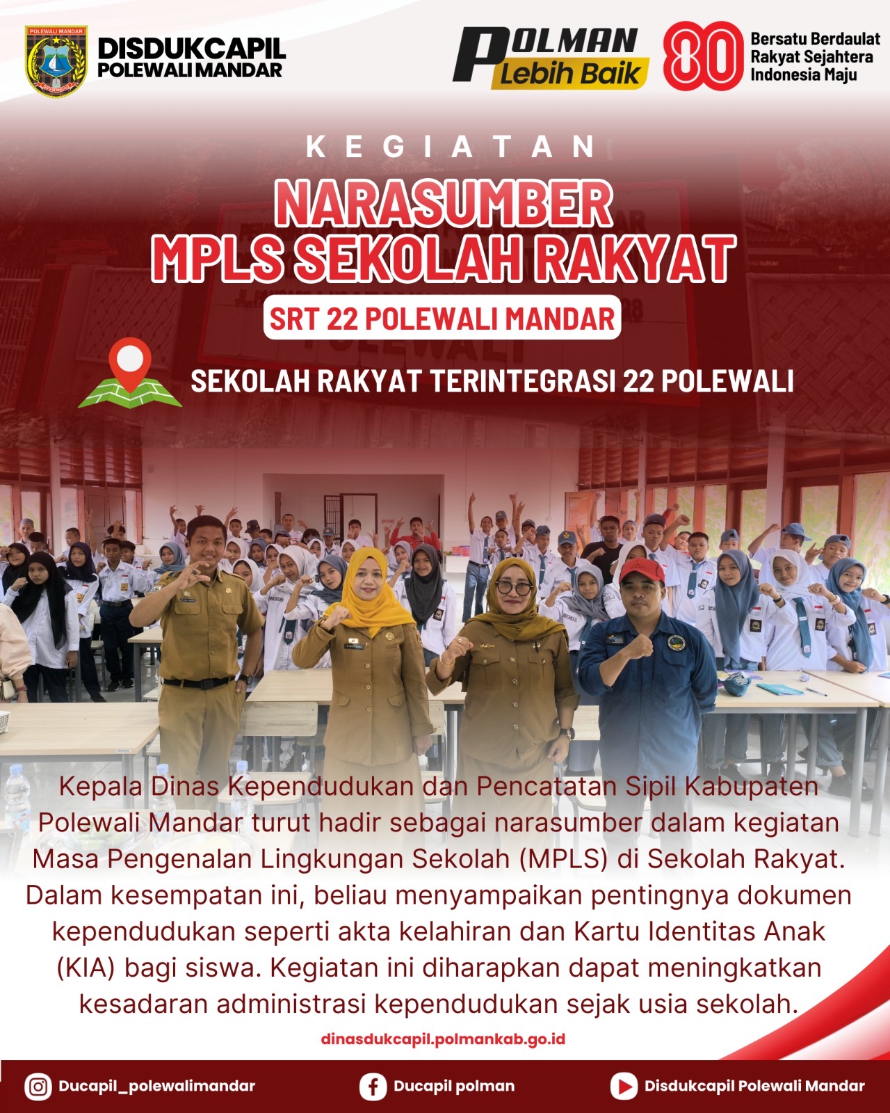 Selengkapnya...Disdukcapil Polman Jadi Narasumber MPLS di Sekolah Rakyat Terintegrasi 22...