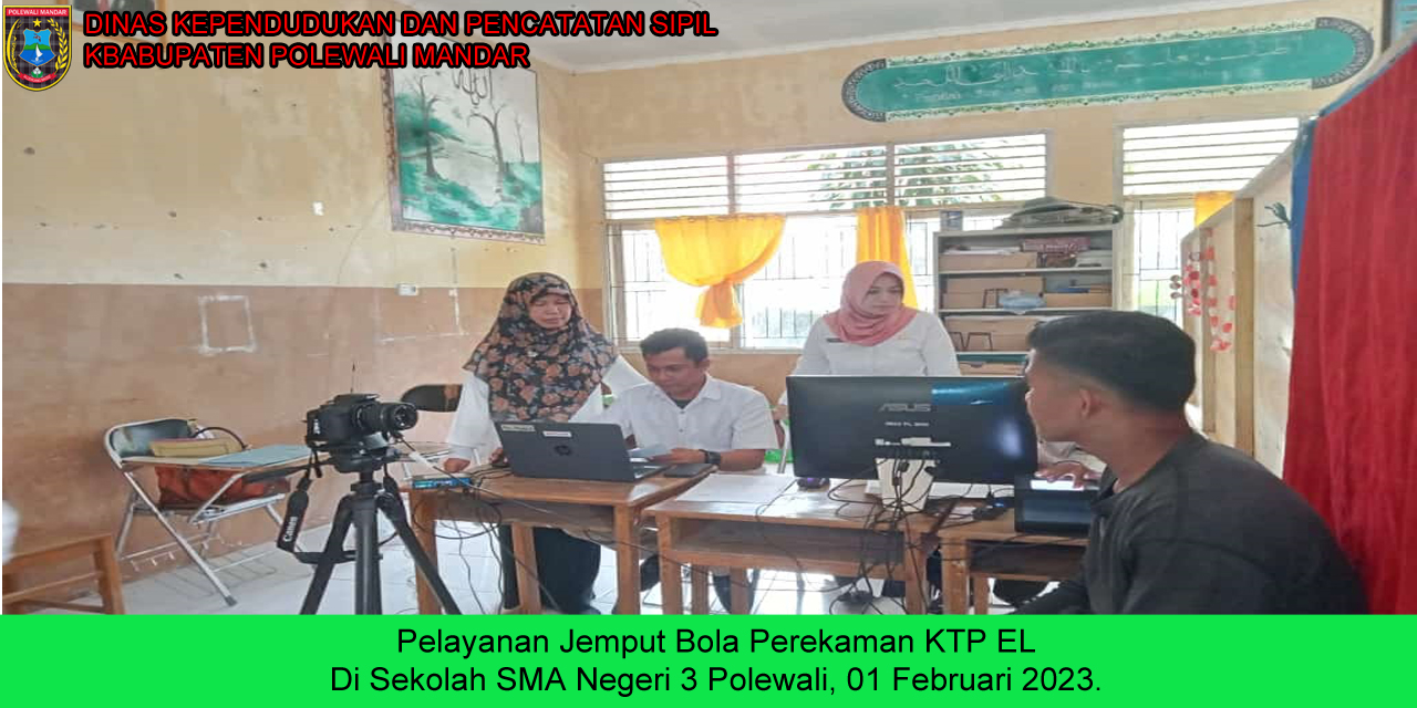31 Januari 2023 - Dinas Dukcapil Kabupaten Polewali Mandar melakukan Pelayanan Jemput Bola Perekaman KTP El di Sekolah SMA Negeri 3 Polewali....