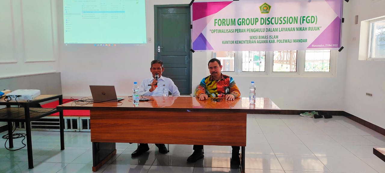 Forum Group Discussion FGD dengan optimalisasi peran penghulu dalam layanan nikah rujuk. Kementerian Agama kabupaten Polewali Mandar melakukan forum diskusi bekerja sama dengan Dinas Dukcapil - 06 Juni 2022....