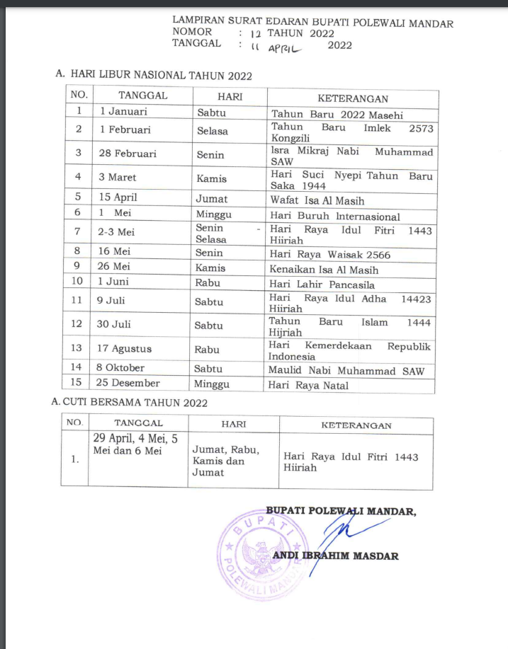 Surat Edaran No.12 Tahun 2022 Tentang Libur Nasional dan Cuti Bersama ...