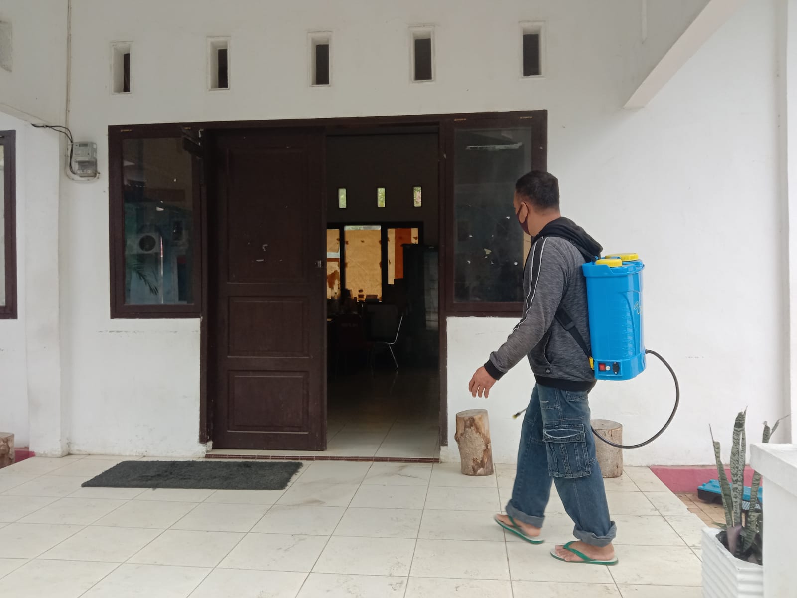 Penyemprotan Disenfektan untuk mencegah penyebaran Covid-19 dan kerja bakti di halaman kantor, Jumat 13 Agustus 2021....