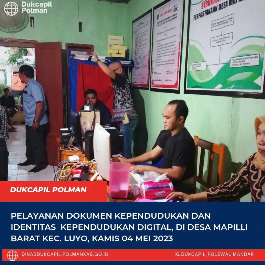 Polewali Mandar ( 04 Mei 2023), Dinas Kependudukan dan Pencatatan Sipil Kabupaten Polewali Mandar Melakukan Pelayanan Jemput Bola Dokumen kependudukan dan Identitas Kependudukan Digital (IKD).Kegiatan ini dilaksanakan di Desa Mapilli Barat Kecamatan Luyo pada tanggal 04 Mei 2023. Masyarakat dapat langsung mengurus dokumen kependudukan Kartu Keluarga, KTP EL, Akta Kelahiran, Akta Kematian serta dokumen kependudukan lainnya.Selain pengurusan dokumen kependudukan, masyarakat juga dapat melaku...