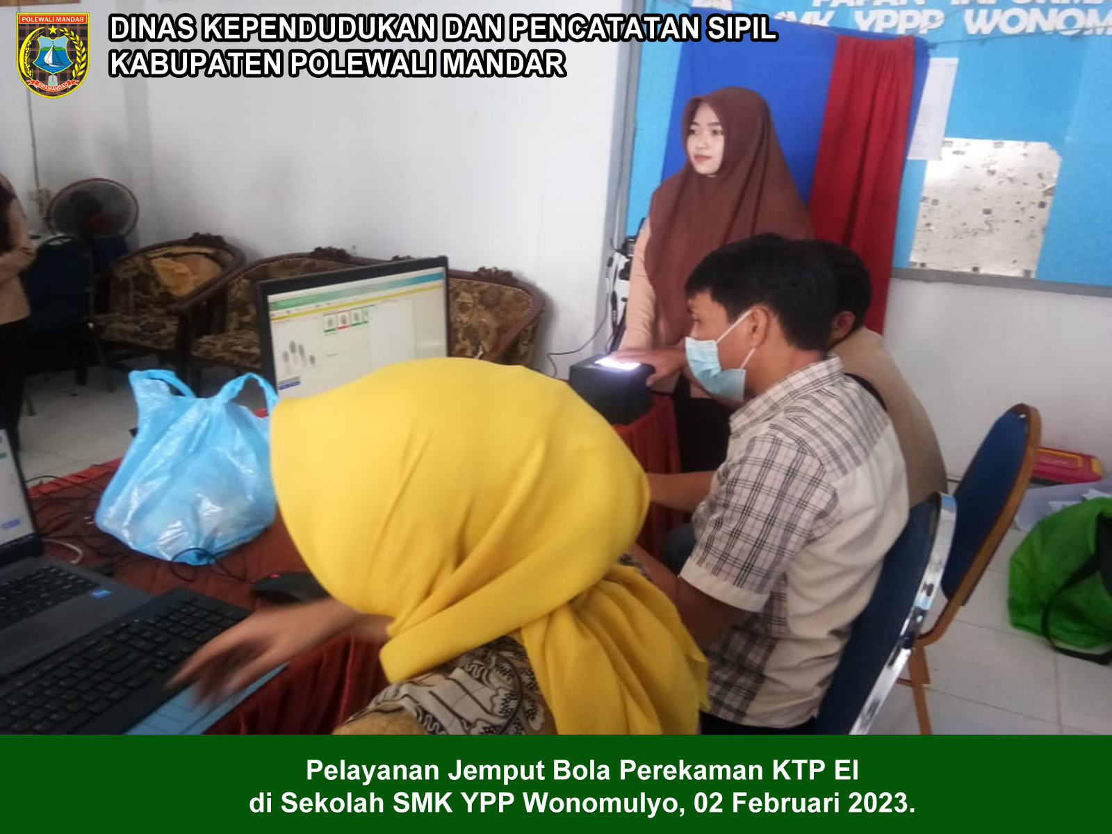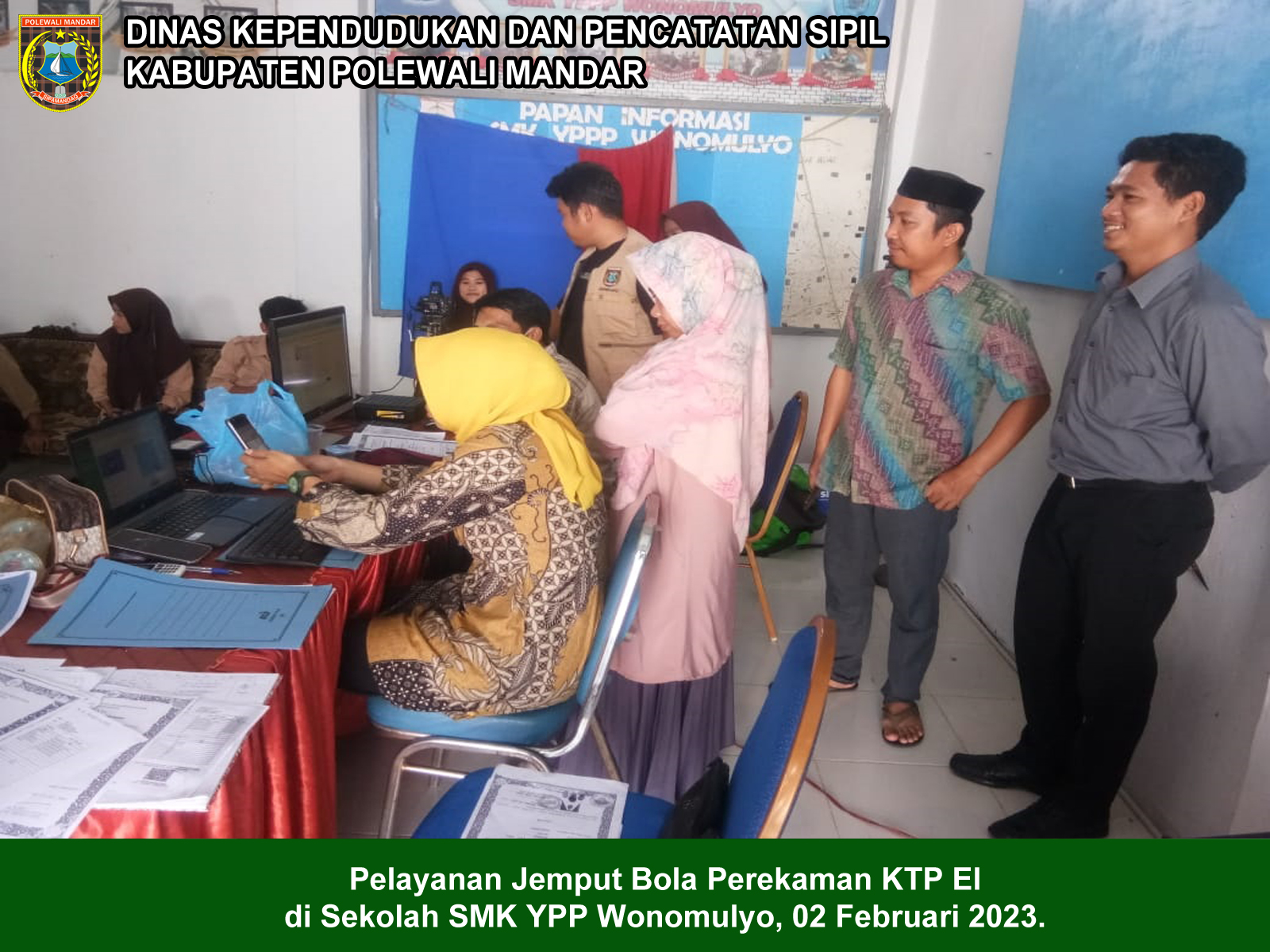 02 Februari 2023 - Dinas Dukcapil melakukan Pelayanan Jemput Bola Perekaman KTP El dan KTP Digital Di Sekolah SMK YPP Wonomulyo.