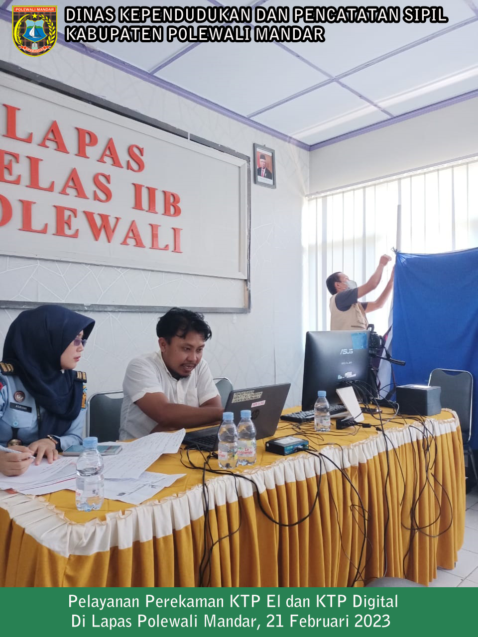 Selasa, 21 Februari 2023 - Dinas Dukcapil Polewali Mandar Melakukan Pelayanan Jemput Bola Perekaman KTP El dan KTP Digital Di Lapas Polewali Mandar. Didampingi langsung oleh Hj. Astuty, S.os, M.Si selaku sekertaris dukcapil.