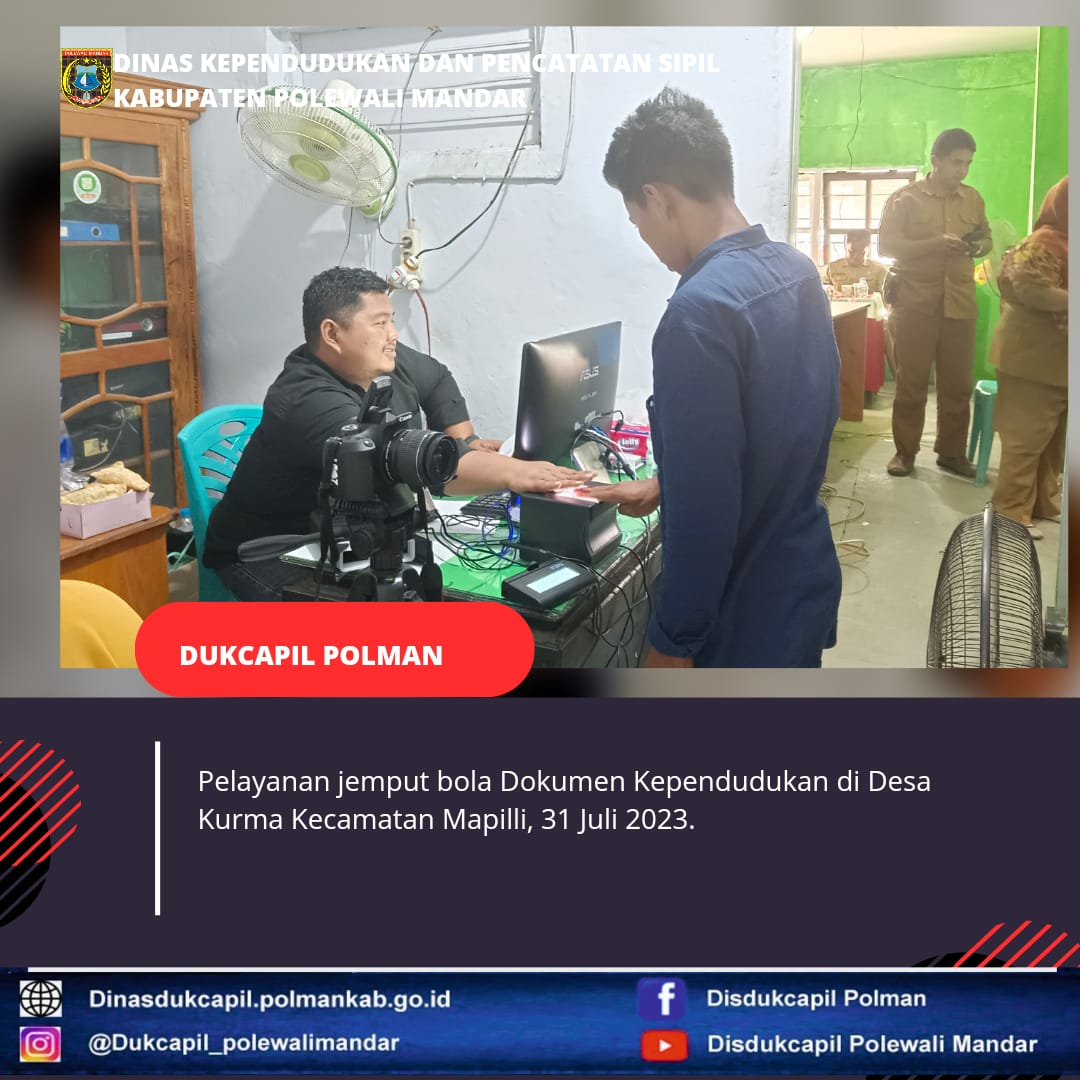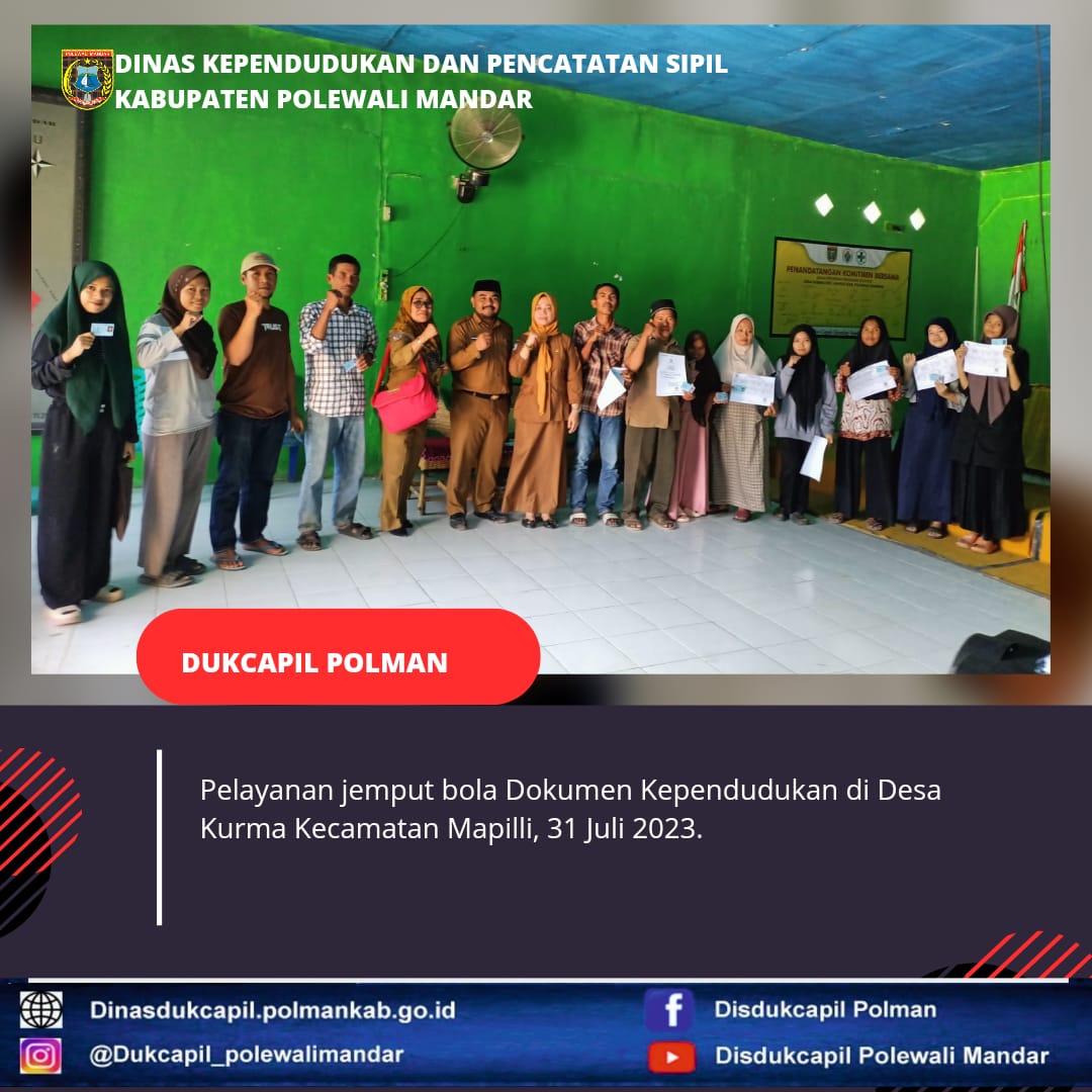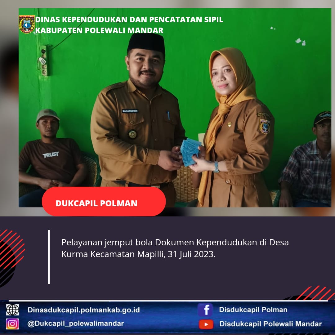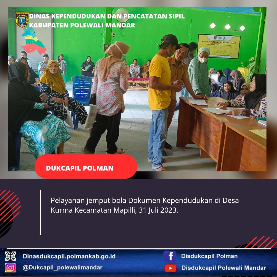 Pelayanan Jemput Bola Administrasi Kependudukan di Desa Kurma Kecamatan Mapilli 31 Juli 2023
