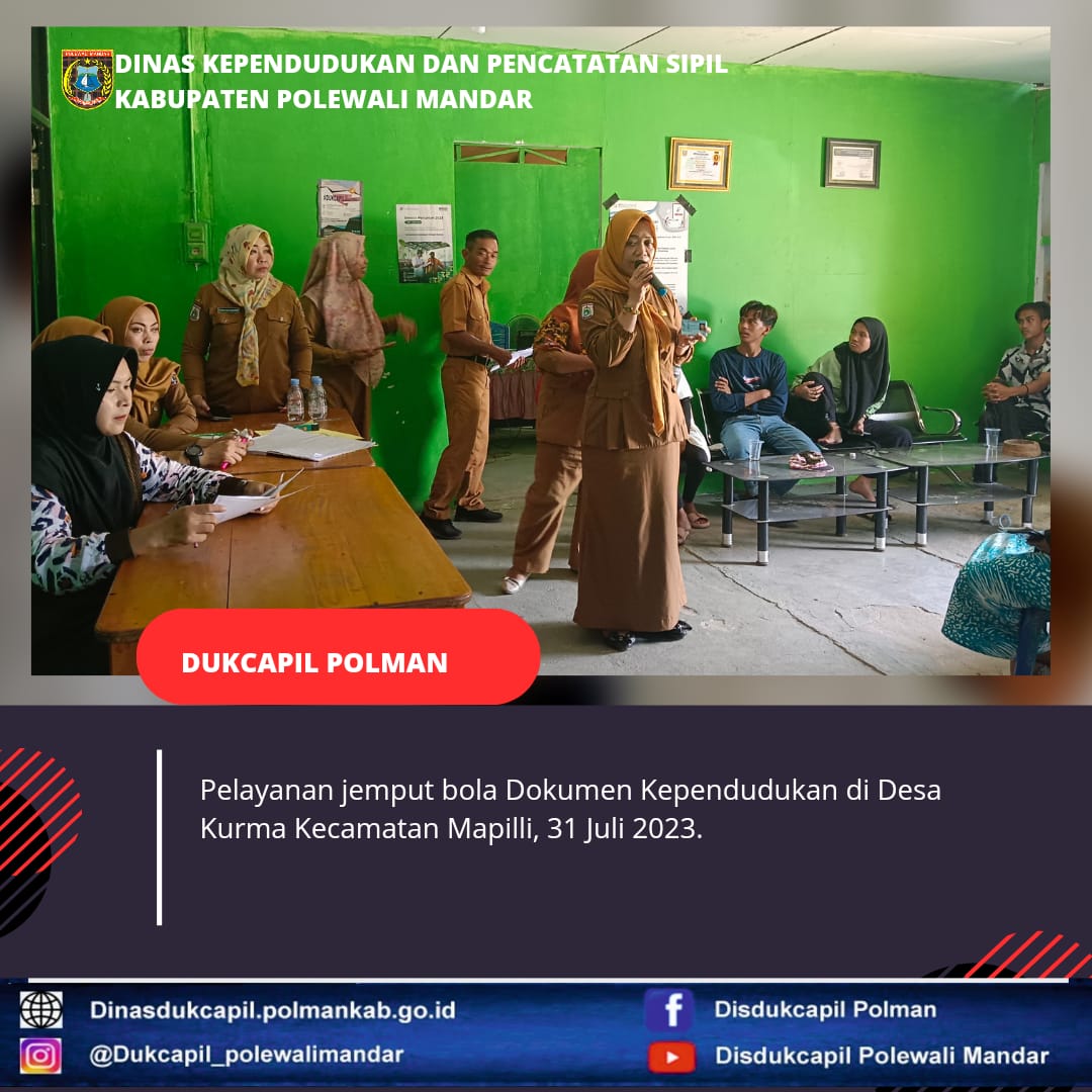 (Polewali Mandar, 31 Juli 2023), Dinas Kependudukan dan Pencatatan Sipil Kabupaten Polewali Mandar Melakukan Kegiatan Pelayanan Jemput Bola Dokumen Kependudukan di Desa Kurma Kecamatan Mapilli.